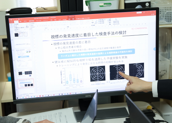 認知症体験のシステムは、三田市の社会福祉協議会との連携プロジェクトから生まれました。ヘッドマウントディスプレイとコントローラーを使って、認知症患者が普段の生活のなかで記憶が抜け落ちてしまう状況を体験できるといったものです。記憶を失わせることはできないので、代わりにVR空間の方を操作することで、記憶と環境の不一致を作り出します。他にも医療の分野では、網膜の異常などによる視覚の不調をVR技術で再現する仕組みを、兵庫医科大学との共同で開発。これまで問診などから推測するほかなかった患者さんの「見え方」を、眼科医がVRで体験し、客観的に把握できるシステムの構築を進めています。