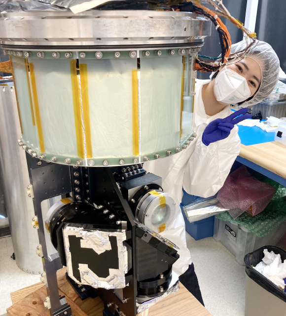 6月の渡米の目的は、望遠鏡のレンズ交換や光学系のチェック。打ち上げはアメリカで行うため、望遠鏡の実物は現地にあるんです。日本ではシミュレーションしかできないので、現地で実物に触れられたのはうれしく、モチベーションが高まりました。ロチェスター工科大学の共同開発メンバーとも、それまでオンラインミーティングは重ねてきましたが、実際に会って協働するなかで、初めてチームワーク意識を実感できたと思います。英語でのコミュニケーションの難しさや意見の違いはあっても「同じ目的に向かって一緒に頑張っているんだ」と。